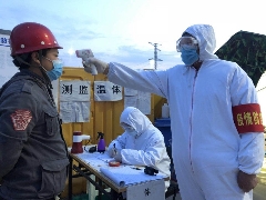 22日上午,記者在德和家園安置區(qū)入口處看到,進入工地的工人們正在排隊登記、測量體溫,有序進入施工現(xiàn)場?!拔覀儐挝粚嵭腥忾]管理,上班時間和下班時間都要測體溫,回到宿舍也要測量體溫,工地管理得非常到位?!惫と藙⒊珊栏嬖V記者。