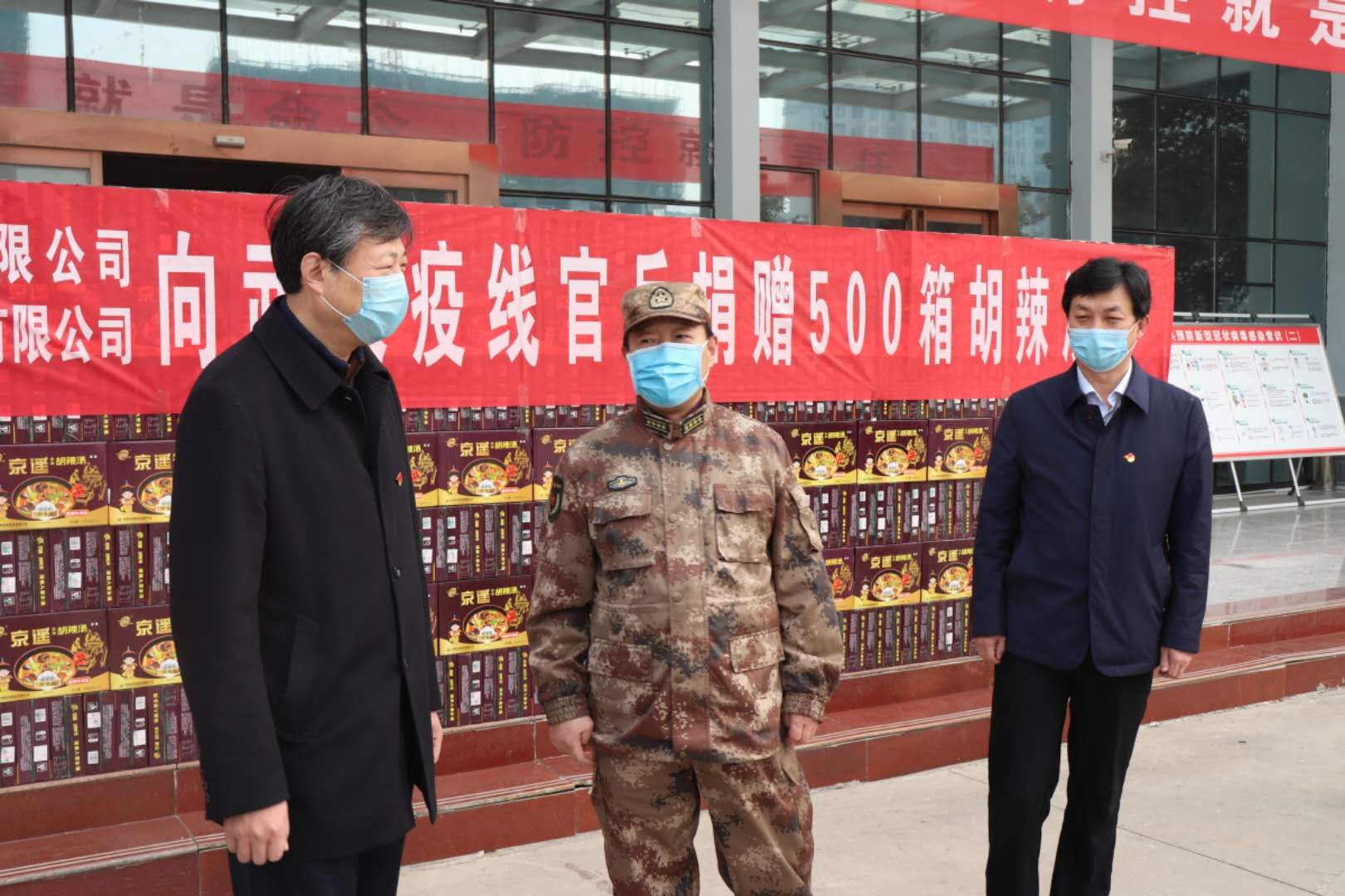 為助力解放軍官兵抗“疫”工作,2月24日上午,東方時尚(西華)機場有限公司,向武漢抗(疫)前線官兵捐贈價值一萬余元的胡辣湯料。周口軍分區(qū)司令員王善沖,西華縣委書記林鴻嘉,常務(wù)副縣長王獻超,西華縣人武部部長錢瑞、政委涂友佳,親臨捐贈現(xiàn)場。