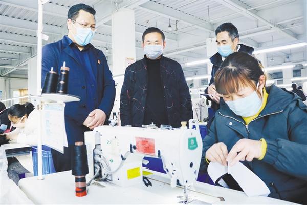為保障抗擊疫情、企業(yè)復(fù)工復(fù)產(chǎn)協(xié)調(diào)推進(jìn),連日來,鄲城縣紀(jì)委監(jiān)委組織紀(jì)檢監(jiān)察干部深入復(fù)工復(fù)產(chǎn)企業(yè),了解企業(yè)復(fù)工審批、疫情防控措施落實(shí)等情況,督促有關(guān)部門及時解決企業(yè)面臨的難題,切實(shí)發(fā)揮監(jiān)督保障作用,全力護(hù)航企業(yè)復(fù)工復(fù)產(chǎn)。圖為昨日,該縣紀(jì)檢監(jiān)察干部在河南旭升帽業(yè)有限公司生產(chǎn)車間了解復(fù)工復(fù)產(chǎn)情況。