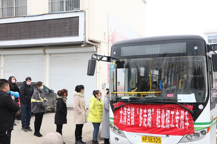 2月26日上午,鹿邑縣太清宮鎮(zhèn)政府門口,七輛公交車排成一行,整裝待發(fā)?!耙蛞咔樵?,本地企業(yè)面臨復(fù)工之后的招工難,很多年前在外地務(wù)工人員滯留在家鄉(xiāng),鎮(zhèn)政府根據(jù)縣里統(tǒng)一部署,想方設(shè)法幫本地企業(yè)解決招工問題,通過逐村宣傳、進廠參觀,讓外出務(wù)工人員看到家鄉(xiāng)巨大變化與本地企業(yè)的優(yōu)勢,吸引他們留在家鄉(xiāng)就業(yè)?!碧鍖m鎮(zhèn)鎮(zhèn)長吳濤介紹,鎮(zhèn)政府租用七輛公交,免費送外地務(wù)工人員到本地企業(yè)參觀、應(yīng)聘,這已經(jīng)不是第一次了。近一周來,鎮(zhèn)政府已經(jīng)組織20輛次、近300人到產(chǎn)業(yè)園區(qū)工廠參觀、應(yīng)聘。