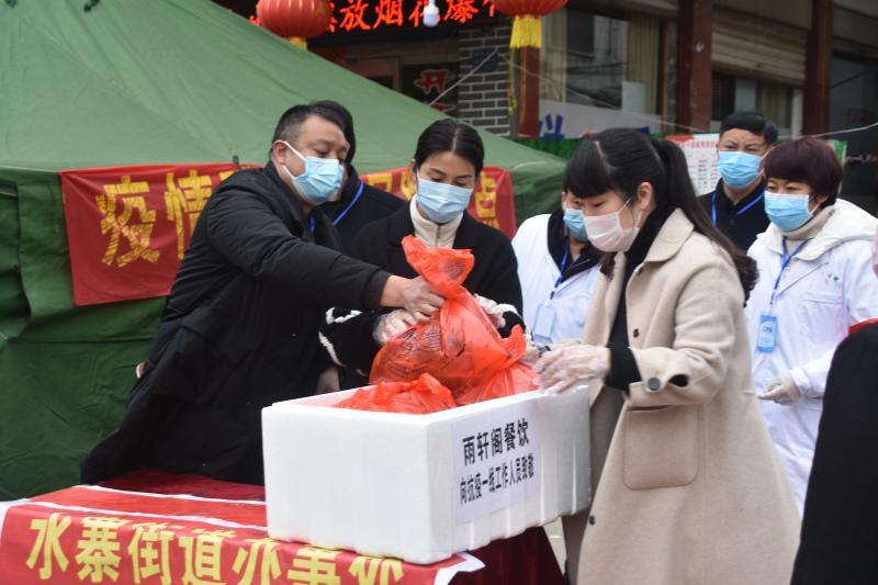 “今天是米飯、魚(yú)香肉絲,還有紫菜蛋花湯和水果。趕快吃點(diǎn)暖暖身子!”上午11時(shí)30分,卡點(diǎn)來(lái)了幾位“不速之客”,幾個(gè)年輕人從車(chē)上抱下幾箱盒飯菜。記者上前打探究竟,原來(lái)是該市雨軒閣飯店經(jīng)理崔雪花等人為一線防控人員送愛(ài)心盒飯來(lái)了。