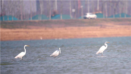 3月5日是驚蟄,俗語(yǔ)有“春雷驚百蟲”,從這一天開始,陽(yáng)氣上升、氣溫回暖、春雷乍動(dòng)、雨水增多,萬物生機(jī)盎然。驚蟄,自古以來是我國(guó)春耕開始的節(jié)令,冬眠的動(dòng)物蘇醒,動(dòng)物們也開始活躍起來。圖為3月4日我市引黃調(diào)蓄工程的兩千多畝湖泊里,水鳥翔集,喜歡水清的白鷺也出現(xiàn)在這里。記者 梁照曾 攝