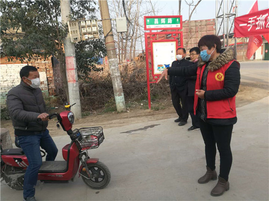 臘月三十那天,餃子剛剛包好,王愛月同志臨危受命,根據(jù)鎮(zhèn)黨委安排部署,果斷迅速組織布防嚴(yán)控,立即進(jìn)入疫情防控第一線。鄉(xiāng)鎮(zhèn)召集各村黨支部書記召開會(huì)議,分析研判嚴(yán)峻形勢(shì),要求各村支部發(fā)揮基層組織“戰(zhàn)斗堡壘”作用,立即摸清情況,穩(wěn)定群眾情緒,增強(qiáng)群眾信心;鎮(zhèn)中心衛(wèi)生院給各村醫(yī)安排防疫工作。會(huì)后,村兩委班子第一時(shí)間成立了奉母鎮(zhèn)后邵村防控新冠肺炎疫情領(lǐng)導(dǎo)小組,王愛月?lián)胃苯M長(zhǎng),協(xié)助支部書記制定全村防控應(yīng)急處置方案,負(fù)責(zé)處理疫情持續(xù)期間各類防控工作,結(jié)合后邵村實(shí)際,從疫情摸排、防控物資采購、應(yīng)急值守、各場(chǎng)所消毒、道路設(shè)卡等各方面全面做好準(zhǔn)備。全村組建6個(gè)排查組對(duì)全村居民逐戶排查,她親自帶隊(duì)逐戶排查所有外來人員,確保不漏一戶一人。之后,建立排查臺(tái)賬,及時(shí)準(zhǔn)確掌控疫情動(dòng)態(tài),為每位務(wù)工返鄉(xiāng)人員發(fā)放了注意事項(xiàng)告知書和宣傳單,對(duì)外出返鄉(xiāng)人員落實(shí)了包戶責(zé)任制。同時(shí)建立防控微信群,實(shí)時(shí)掌握他們的身體情況,解答他們的疑惑,全力做好心理疏導(dǎo)工作,切實(shí)解決鄉(xiāng)里鄉(xiāng)親的困難問題。