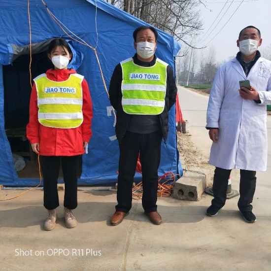 3月9日,春雨淅瀝,劉志杰仍在村口卡點(diǎn)冒雨堅守崗位。女兒劉苗苗此時正在村里登記排查,為村民測試體溫,父女倆一個內(nèi)防疫情輸入,一個外防疫情擴(kuò)散,點(diǎn)上嚴(yán)管,面上嚴(yán)查,這感人一幕,將會深深印刻在任莊行政村村民們的腦海中!