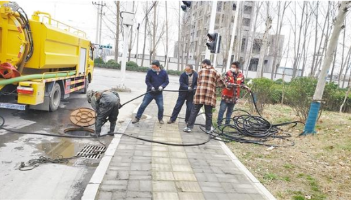 開發(fā)區(qū)公用事業(yè)管理中心按照精細化管理要求,組織市政設施維護人員定期對路網(wǎng)、行道樹進行巡查,及時更換雨污水井蓋及雨水箅,修剪行道樹。圖為3月9日,開發(fā)區(qū)公用事業(yè)管理中心對轄區(qū)朝陽路市政設施加緊維護,及時疏通排水管道,消除道路積水隱患。