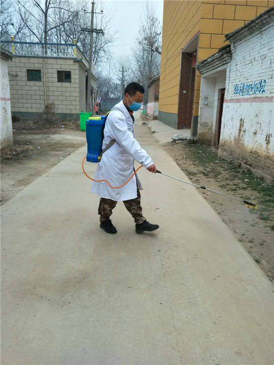 他不是為村民分發(fā)消毒液,就是對村主干道、公共衛(wèi)生間每天堅(jiān)持消毒,雙腿累腫了,嘴唇起了泡,可他咬牙堅(jiān)持。村委成員見他每天像個陀螺一樣高速的運(yùn)轉(zhuǎn)著,讓他休息幾天,可楊建崗說啥也不同意。每天還是堅(jiān)持著值班,發(fā)現(xiàn)問題及時糾正,對有些不理解的村民進(jìn)行說服教育。除了值班,他還與其他志愿者一起做好流動崗,發(fā)現(xiàn)有扎堆的村民立即勸阻,發(fā)現(xiàn)有不戴口罩者一律勸回,對亂走親戚的村民堅(jiān)決說“不”。