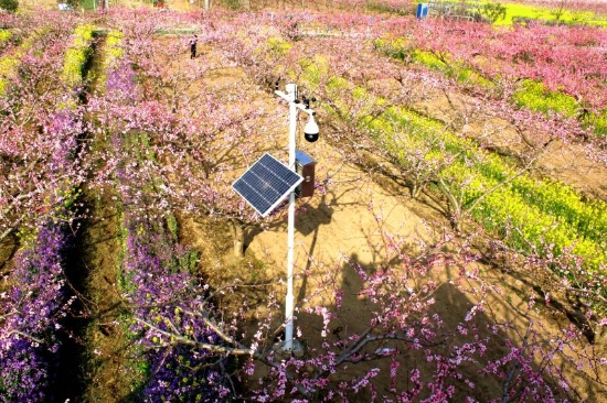 “這兩天,外地客商看到我們桃園安裝上了千里眼,適時(shí)能對(duì)桃園進(jìn)行監(jiān)控,說(shuō)我們種植的水蜜桃是科學(xué)種植,開花結(jié)果都能看得到,品質(zhì)一定有保證,桃花剛開,訂單就來(lái)了,都爭(zhēng)著預(yù)訂俺合作社六月份才成熟的水蜜桃呢?!焙秃鲜⑿老驳卣f(shuō)。