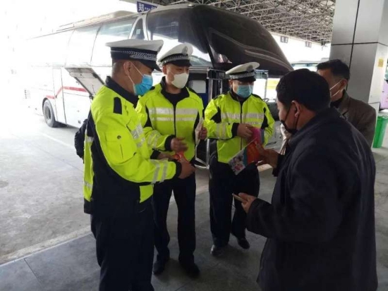 檢查中,民警向客運(yùn)車(chē)輛駕駛員、乘客發(fā)放《客運(yùn)企業(yè)疫情防護(hù)知識(shí)》《珍愛(ài)生命安全出行》《致駕駛員的一封信》等交通安全宣傳資料。