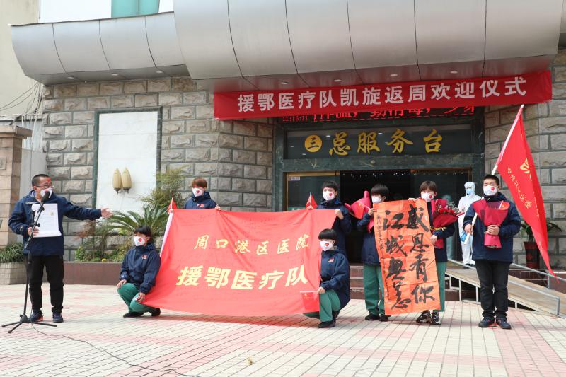 4月1日上午,承載著家鄉(xiāng)人民的殷切期盼,周口港區(qū)醫(yī)院援鄂醫(yī)療隊(duì)8名隊(duì)員勝利完成任務(wù),載譽(yù)歸來(lái)。接下來(lái),他們將在周口迎賓館進(jìn)行為期14天的隔離休整。至此,我市86名援鄂醫(yī)療隊(duì)隊(duì)員全部回家。周口市政府領(lǐng)導(dǎo)、周口港區(qū)醫(yī)院的同事、隊(duì)員親屬好友在此為他們舉辦了隆重簡(jiǎn)短的歡迎儀式。