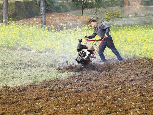 圖三 昨日,沈丘縣卞路口鄉(xiāng)一農(nóng)民正在用小型農(nóng)機犁地。連日來,氣溫不斷回升,當(dāng)?shù)剞r(nóng)民搶抓有利時機,進行犁地、澆水、除草等春季管理,田間地頭一派忙碌景象。 黃海濤 攝