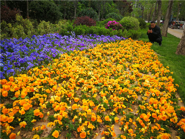 4月20日,在文昌大道道路綠化帶上,市政工人正在為栽種的花卉綠植補(bǔ)充水分。入春以來(lái),我市城區(qū)一直在進(jìn)行美化綠化,現(xiàn)在各個(gè)街道逐漸顯現(xiàn)出絢麗身姿。市民走在市區(qū)的每個(gè)街道都能看到各色花卉、綠植,很是養(yǎng)眼。