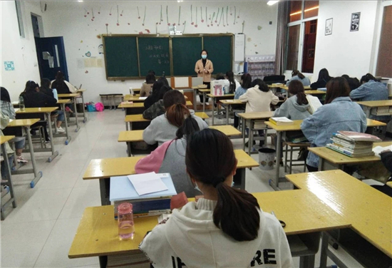 4月20日,學(xué)生報(bào)到。在校外廣場(chǎng),有專業(yè)教師耐心引導(dǎo),學(xué)生掃描健康碼進(jìn)行登記,間隔一米以上有序排隊(duì),電子測(cè)溫后進(jìn)入消毒區(qū)域。進(jìn)入校門前簽字確認(rèn),再次測(cè)溫,進(jìn)行身體和物品消毒方可進(jìn)入校園,學(xué)生找到自己專業(yè)班級(jí)登記確認(rèn)后進(jìn)入宿舍。就餐時(shí)單人單桌、同向按號(hào)進(jìn)餐。 4月21日,開學(xué)首日上午播放省教育廳制作的疫情防控宣傳片。院長(zhǎng)侯營(yíng)坡安排部署近期教學(xué)和防疫工作。下午各專業(yè)繼續(xù)進(jìn)行疫情防控知識(shí)普及、愛國(guó)主義教育、健康教育、心理疏導(dǎo)、食品安全教育等,由復(fù)學(xué)方案指定的教師分別授課。晚課時(shí)間召開主題班會(huì),班主任具體負(fù)責(zé),講解老師參加,采取師生互動(dòng),學(xué)生人人發(fā)言,讓學(xué)生進(jìn)一步懂得防控疫情的重要性及防控措施方法。學(xué)生上課實(shí)行單人單桌,保持一定距離,課前測(cè)試體溫,拒絕發(fā)熱學(xué)生進(jìn)入教室,做到教室通風(fēng),師生戴口罩,下課后不聚集,有序休息離開教室。教務(wù)處及各專業(yè)負(fù)責(zé)教學(xué)和疫情防控情況的督導(dǎo)。
