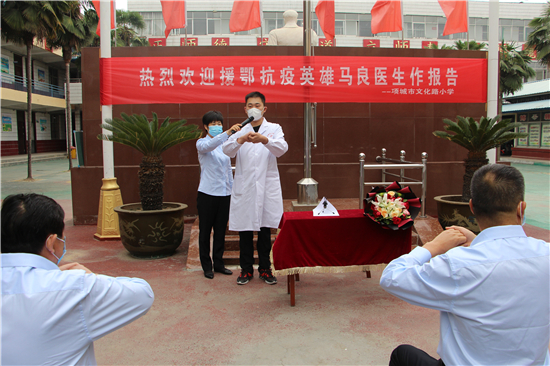 為彰顯榜樣力量,傳承抗“疫”精神,5月6日,項城市文化路小學(xué)邀請項城援鄂抗“疫”英雄代表項城市中醫(yī)院脾胃肝膽科護士馬良來校為廣大師生作報告,講述戰(zhàn)“疫”背后的故事,厚植愛國主義情懷。
