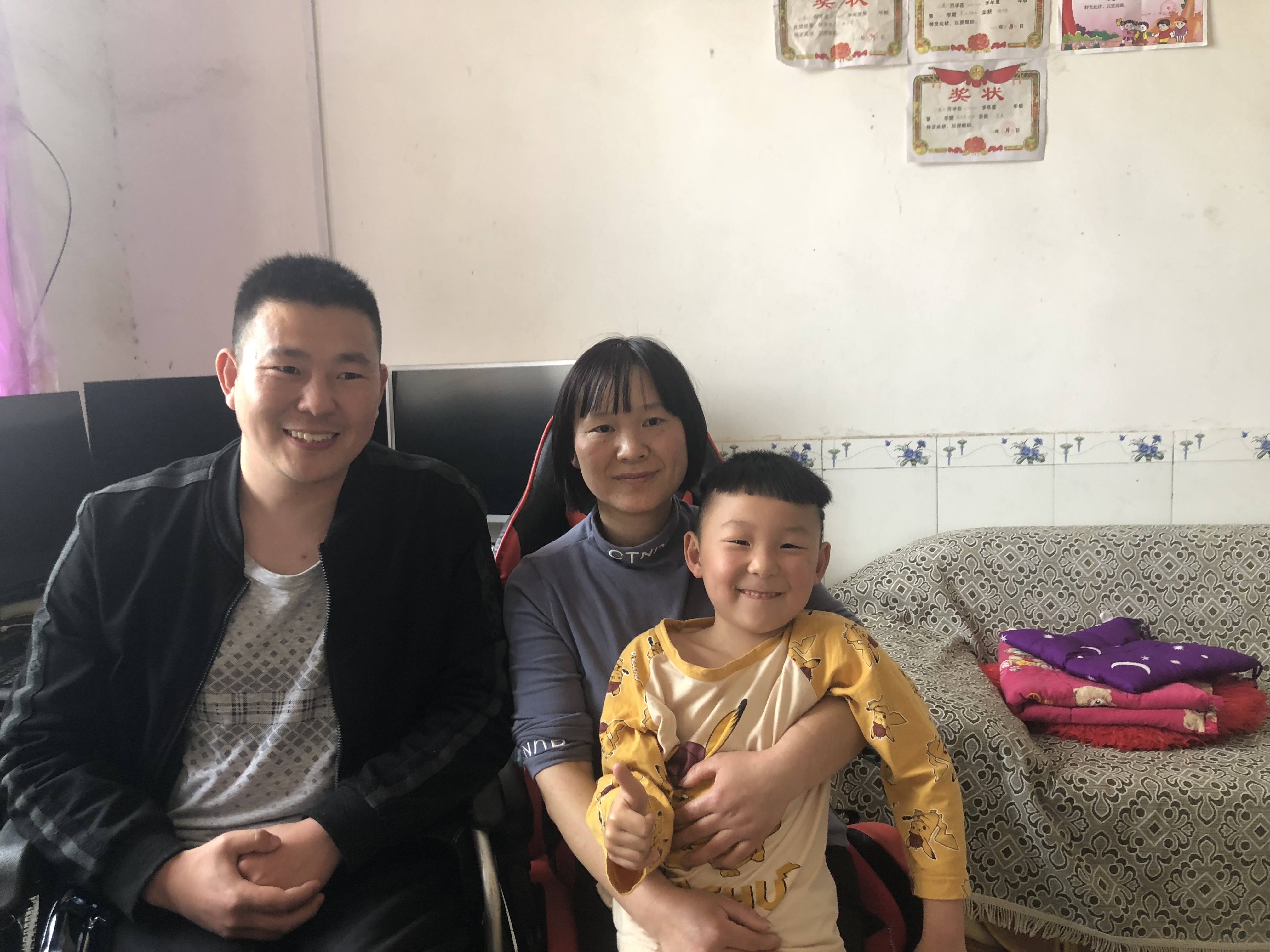 在信息化的時(shí)代,他熟悉了上網(wǎng),學(xué)會(huì)了與更多的人交流,尤其是那些陽光、向上、充滿正能量的網(wǎng)友,從他們身上,學(xué)到了許多東西。在沈丘縣委巡察辦、白集鎮(zhèn)政府、縣殘聯(lián)、村委會(huì)和親友的幫助下,他開起了網(wǎng)店,銷售家鄉(xiāng)特產(chǎn),銷售鞋子、服裝等上百種商品?!熬W(wǎng)”開了一片新天地,“網(wǎng)”到了四川網(wǎng)友謝艮瓊為妻,并生下寶貝兒子,取名顧豫川。