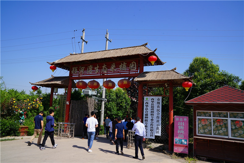出安羅高速西華西站,沿S329線西行百余步,忽逢桃花林,南行數(shù)千步,中無雜樹,芳草鮮美,落英繽紛,林深處現(xiàn)一村莊?!巴恋仄綍纾萆醿叭?。阡陌交通,雞犬相聞。黃發(fā)垂髫,并怡然自樂……”穿越千年,陶淵明筆下的“桃花源”在西華縣黃橋鄉(xiāng)裴莊村得以“重現(xiàn)”。