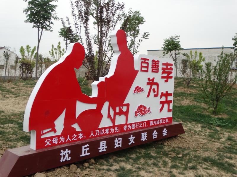 在具體操作中,該縣婦聯(lián)將白集鎮(zhèn)劉樓村的“碧水灣”一隅,打造成為巾幗文化宣傳新基地暨鄉(xiāng)村振興示范點。在沿“碧水灣”小游園周圍曲徑路口、濃郁的花草叢中等顯眼位置,樹立各具特色、造型各異的鐵藝宣傳展板,展板以黨的領導、家風家訓、孝道文化、`五美’庭院建設及防溺水等人文教育、人文關懷為核心內容,讓群眾看得到、學的懂,只要群眾走過路過,就會被刊板所吸引默念誦讀,用這種接地氣的方式,讓廣大群眾在潛移默化中接受巾幗文化宣傳教育,提高文化素質,助力鄉(xiāng)村振興。