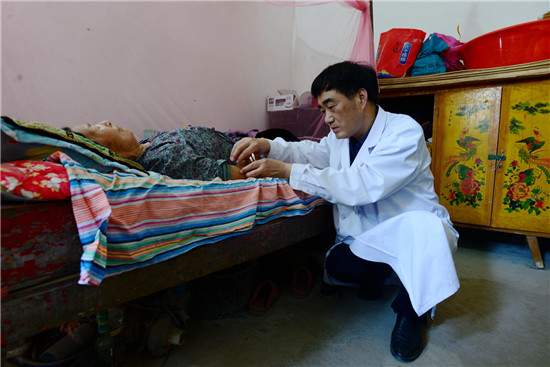 李樓鄉(xiāng)位張行政村72歲的貧困戶張振廷腦中風(fēng)多年,在大醫(yī)院治療一個(gè)月后,留有偏癱后遺癥臥床不起;李莊行政村80歲的貧困戶李體榮也是此癥,因無錢治療,二人均回家“等死”。柴萬靈作為簽約家庭醫(yī)生,就在他們家中設(shè)立家庭病床,每周一、三、五到老張家,二、四、六到老李家,給他們采用中醫(yī)針灸、按摩,并為其煎服偏癱復(fù)原湯,兩位老人都是半年左右能拄拐下地。