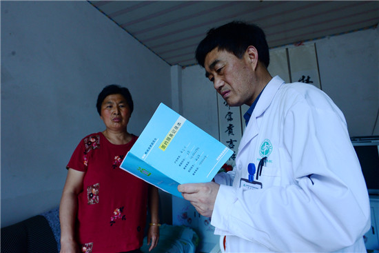 脫貧攻堅(jiān)戰(zhàn)打響了,柴萬靈為貧困群眾解除病痛的初衷和信念融入國家政策洪流。特別是鄲城縣在全國創(chuàng)新提出醫(yī)共體健康扶貧助力脫貧攻堅(jiān),更加激發(fā)了柴萬靈身為黨員的使命感和責(zé)任心,他化身為健康扶貧的戰(zhàn)士,背起藥箱、上門簽約服務(wù)、當(dāng)好家庭醫(yī)生,用腳步丈量黨性,丈量黨和群眾之間的距離。每天走訪近百戶,天天超過3萬步,腳上磨出的血泡破了一層又一層,最終結(jié)成繭。3年多來,鄲城縣因病致貧、因病返貧比率從60%降至40%,全縣2019年5月9日成功脫貧摘帽。軍功章里,有柴萬靈的一份貢獻(xiàn)。
