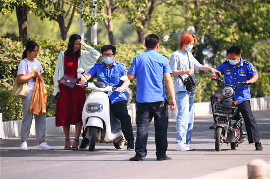 一位城管工作人員告訴記者,嚴查電動車逆行,扣車罰款不是目的,關(guān)健是告誡電動車騎行者要養(yǎng)成遵守交通規(guī)則的好習(xí)慣,共同做文明城市的使者。記者 梁照曾 攝
