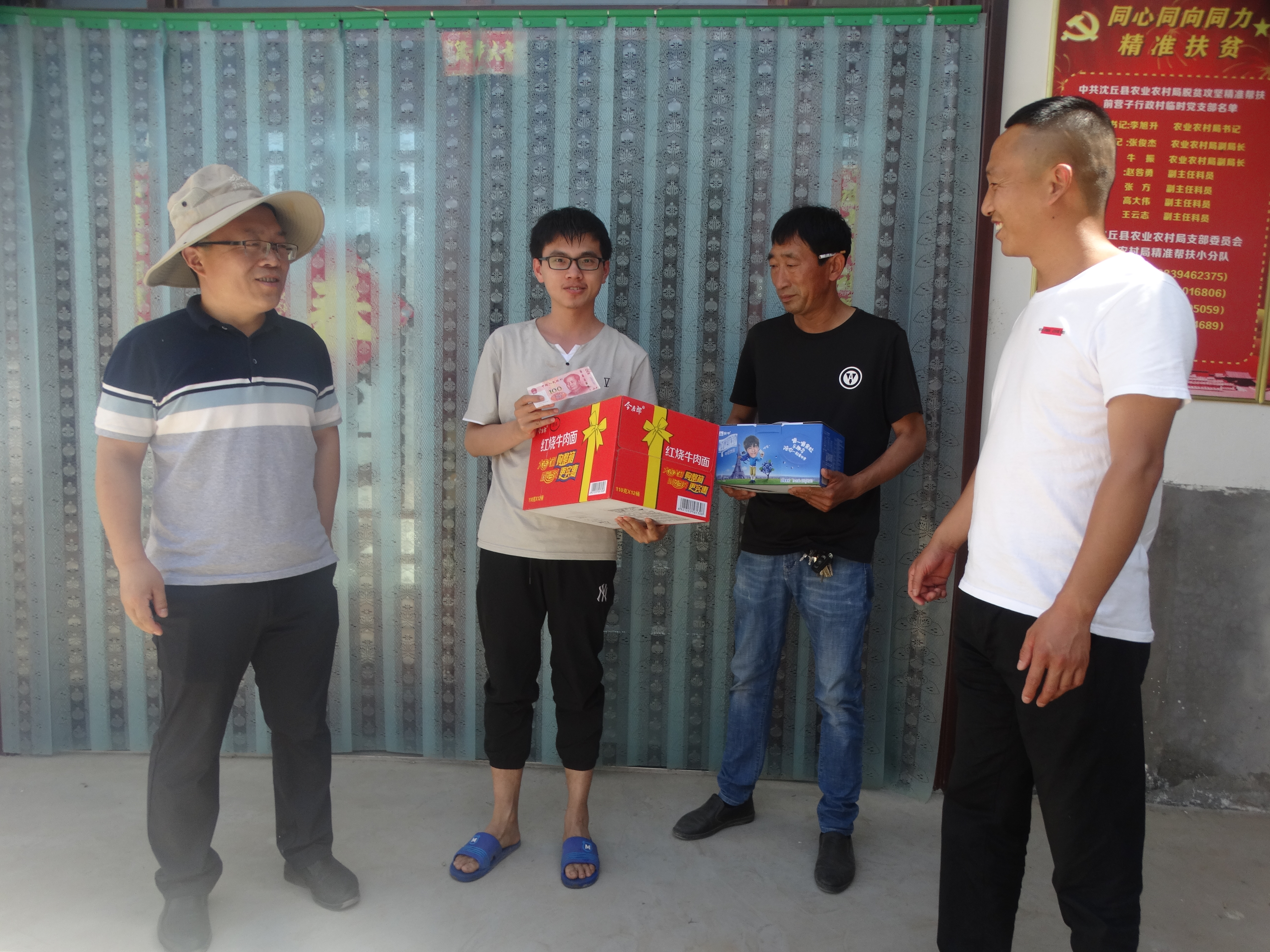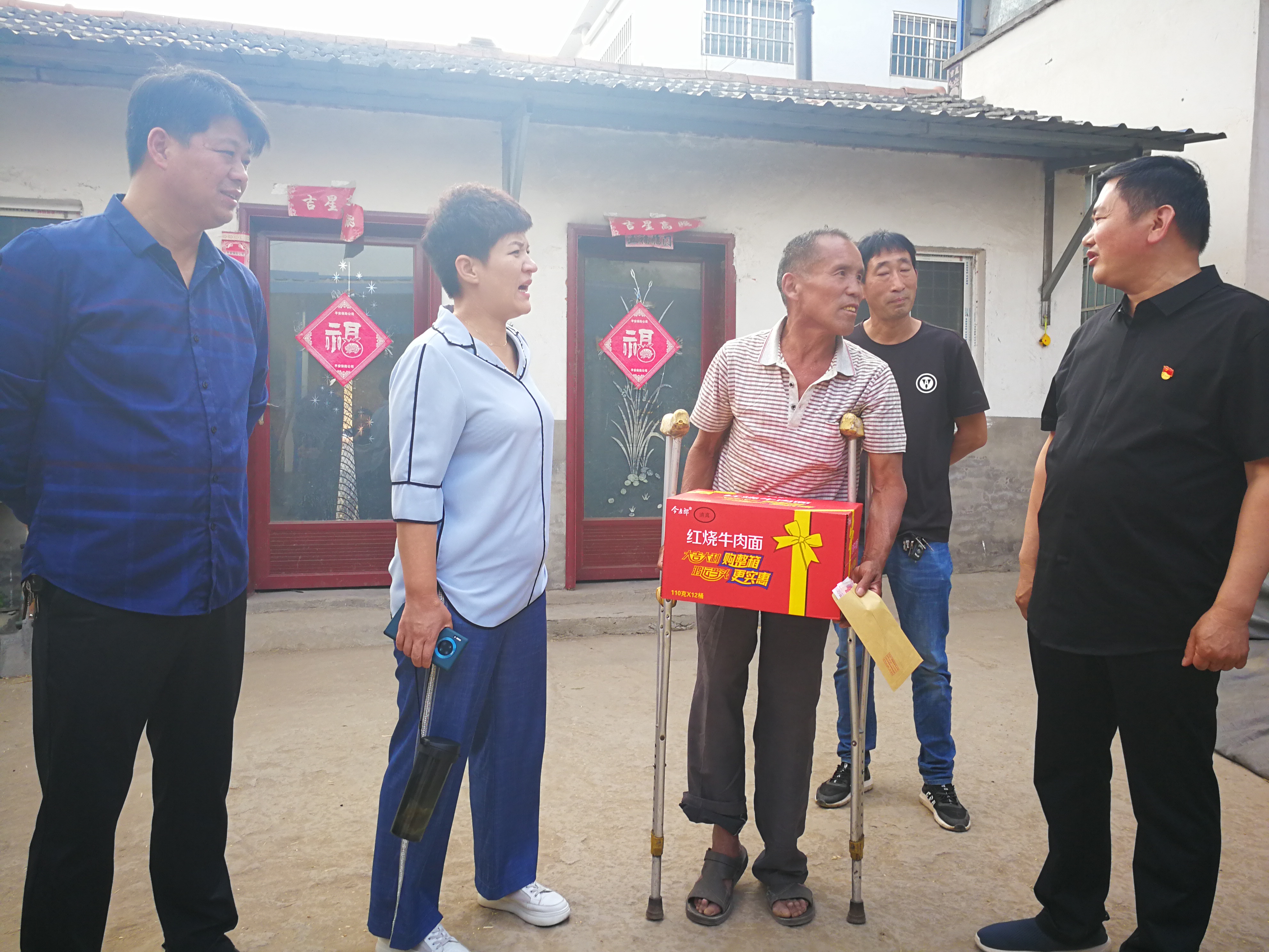 5月31日,正值麥?zhǔn)沾竺r節(jié),沈丘縣農(nóng)業(yè)農(nóng)村局領(lǐng)導(dǎo)班子帶領(lǐng)局機(jī)關(guān)駐村幫扶工作隊(duì)和卞路口鄉(xiāng)黨委書記牛曉靖、鄉(xiāng)長趙斌等一行5人,帶著黨的溫暖和幫扶干部的濃濃真情,前往卞路口鄉(xiāng)前營子村,走訪慰問貧困戶。