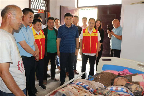 又到了“三夏”麥?zhǔn)占?,趙志發(fā)在搶收搶種的同時(shí),還要照顧患病的妻子,他一人能否忙顧過(guò)來(lái)?4日上午,太康縣網(wǎng)信辦主任張照營(yíng)、縣好人協(xié)會(huì)會(huì)長(zhǎng)王勇、秘書長(zhǎng)朱業(yè)德、中國(guó)好人、河南省四通鍋爐有限公司董事長(zhǎng)馮坤等一行9人,帶著米面油等慰問(wèn)品來(lái)到趙志發(fā)的家里。漂亮的磚瓦房,整潔的庭院,院子中石榴樹(shù)、核桃樹(shù)與一側(cè)種植的豆角、西紅柿等蔬菜高低輝映。處處顯示著主人的勤勞與干凈。“每次來(lái)都給俺帶禮品?,F(xiàn)在家里啥都不缺了?!睆闹驹刚呤掷锝舆^(guò)慰問(wèn)品,趙志發(fā)笑呵呵地對(duì)張照營(yíng)等人說(shuō)。