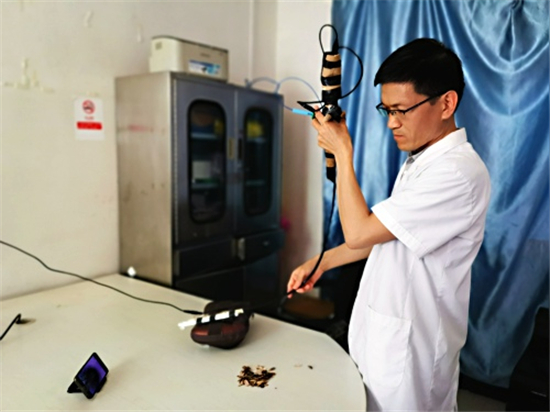 周口市婦幼保健院南院區(qū)負(fù)責(zé)人付玉圓說(shuō):徐醫(yī)生從2016年就開(kāi)始進(jìn)修學(xué)習(xí)呼吸內(nèi)鏡操作,先后去過(guò)鄭大三附院、吉林大學(xué)第一附屬醫(yī)院進(jìn)修?;貋?lái)后,為了練習(xí)手感和操作技術(shù),就自己弄材料,自制了簡(jiǎn)易的模擬呼吸內(nèi)鏡用來(lái)練手。只要一有時(shí)間,就練習(xí)內(nèi)鏡操作。