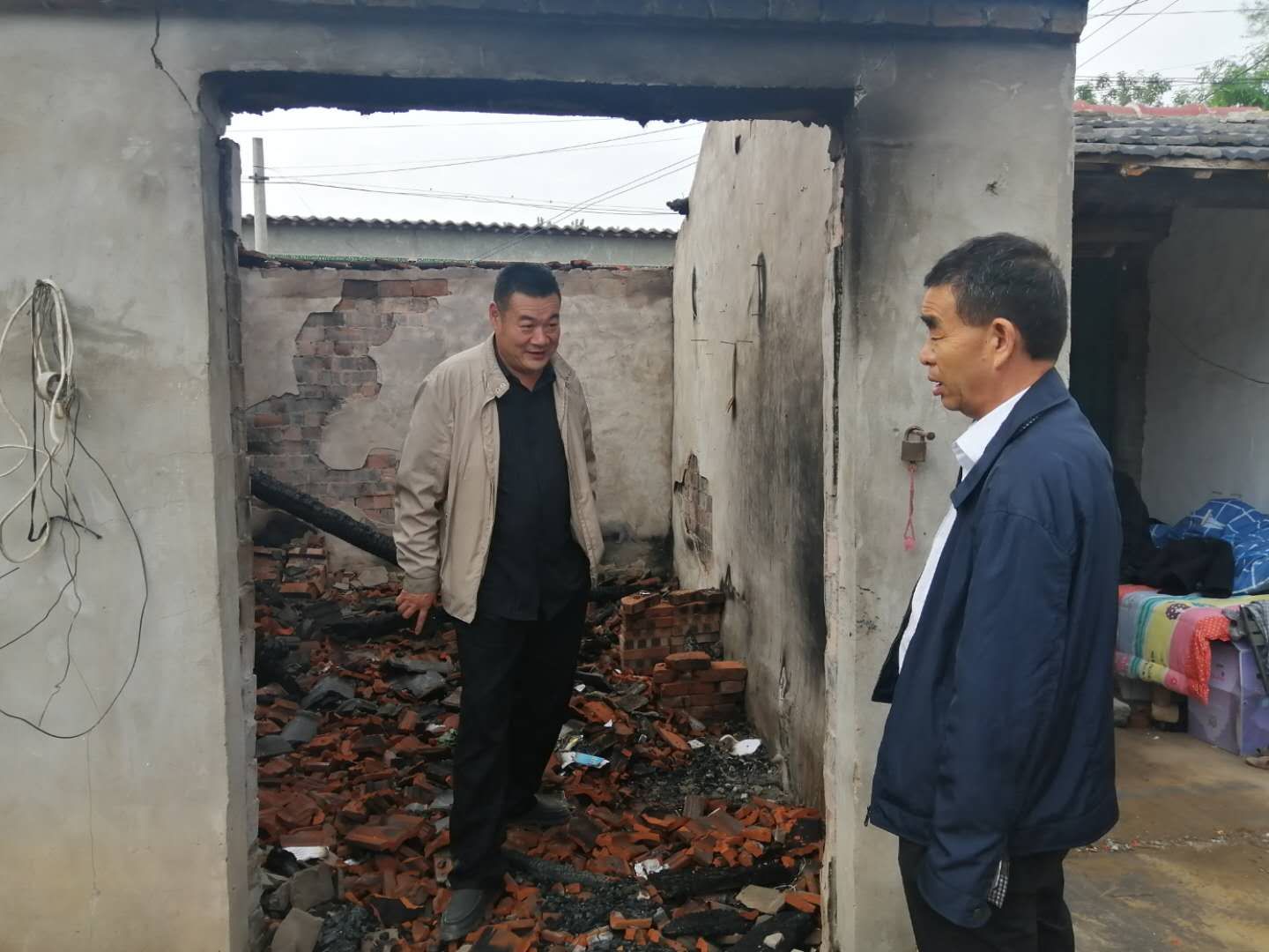 聽完情況后,督導(dǎo)組立刻和駐村工作人員一起到李洪范家查看情況,現(xiàn)場(chǎng)主屋已經(jīng)全部燒毀,屋里到處是瓦礫......李洪范站在被燒毀的房屋里,表情木納的自言自語道“燒得一干二凈,什么都沒了,這以后咋弄呀?!爆F(xiàn)場(chǎng)詢問其生活情況時(shí),李洪范說,“當(dāng)天,鄉(xiāng)里邊就送來了米、油和錢。村長(zhǎng)也送來了幾件衣服,現(xiàn)在就是沒有地方住?!?/p>