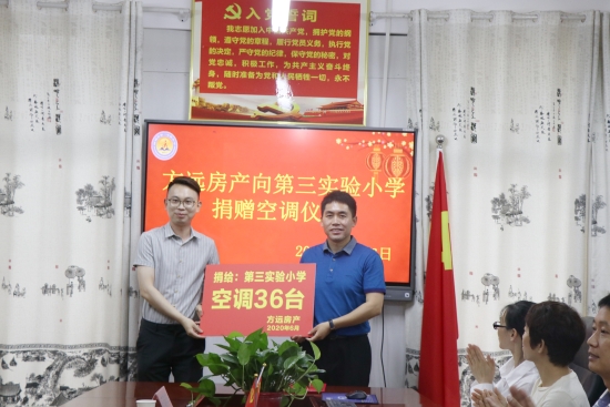 “方遠(yuǎn)房地產(chǎn)公司為第三實(shí)驗(yàn)小學(xué)捐贈空調(diào),大大改善學(xué)校的降溫條件,為孩子們營造更為舒適的學(xué)習(xí)環(huán)境?!钡谌龑?shí)驗(yàn)小學(xué)校長王玉剛表示,學(xué)校將以此為契機(jī),號召廣大學(xué)生好好學(xué)習(xí),長大后回報社會;全校教職員工以優(yōu)異的教學(xué)業(yè)績回報社會,傳遞愛心,努力辦學(xué)生快樂、教師幸福、家長滿意的現(xiàn)代化學(xué)校。
