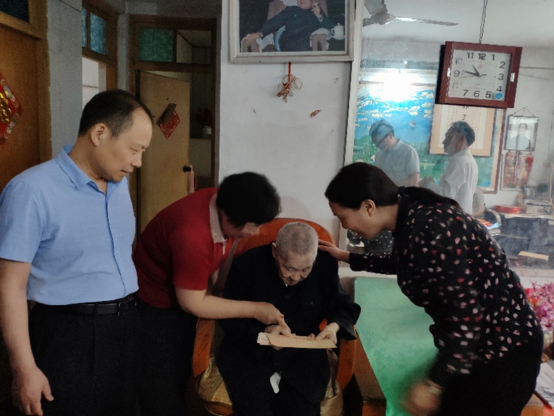 趙百廉老人家現(xiàn)年94歲,系黃埔軍校二十三期學(xué)員,同時(shí)是一名抗日老兵。張梅枝一行走進(jìn)趙百廉家中,對(duì)老人噓寒問(wèn)暖,詳細(xì)了解老人的起居飲食、身體狀況,并為老人送上了慰問(wèn)品、慰問(wèn)金,感謝老人在抗日戰(zhàn)爭(zhēng)中作出的貢獻(xiàn)。同時(shí)向他送上黨和政府的關(guān)懷和節(jié)日的祝福,祝愿他身體健康,晚年幸福。