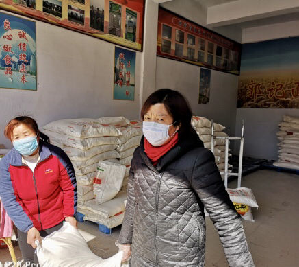 董君蓮還組織公司員工積極配合政府的工作安排,除了每天對(duì)廠區(qū)進(jìn)行消毒外,在工廠門口設(shè)立疫情防控卡點(diǎn)。她一邊為前來采購面粉的老百姓做好信息登記、測量體溫、酒精消毒并檢查是否佩戴口罩,一邊給老百姓宣傳疫情防控知識(shí),幫老百姓抬面粉送車上,她講最多的一句話就是“要相信黨委政府,在共產(chǎn)黨的領(lǐng)導(dǎo)下,在咱老百姓的共同努力下,一定能早日勝利打贏抗擊疫情阻擊戰(zhàn)!”