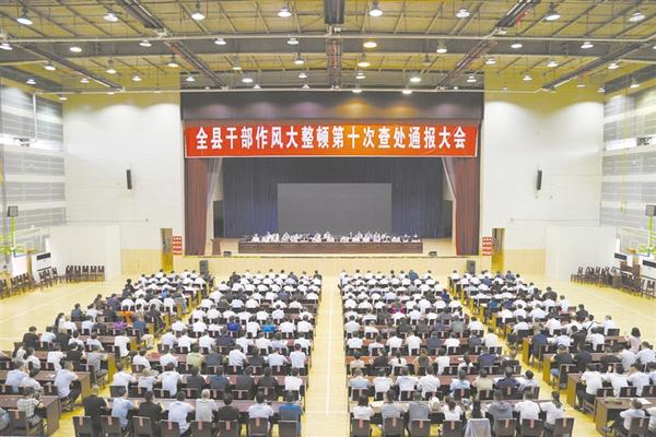 本報(bào)訊 (記者 韋偉 文/圖) 6月23日,沈丘縣召開(kāi)全縣干部作風(fēng)大整頓第十次查處通報(bào)大會(huì)(如圖)。會(huì)議聚焦環(huán)保攻堅(jiān)、營(yíng)商環(huán)境、作風(fēng)建設(shè)等重點(diǎn)工作,亮劍“中梗阻”,狠剎作風(fēng)頑疾,為全縣經(jīng)濟(jì)社會(huì)大局創(chuàng)造良好的發(fā)展環(huán)境??h委書記皇甫立新出席會(huì)議并講話。省委第十一巡視組成員李邊疆、劉燚、黃超、張培剛列席會(huì)議??h長(zhǎng)劉國(guó)慶主持會(huì)議。