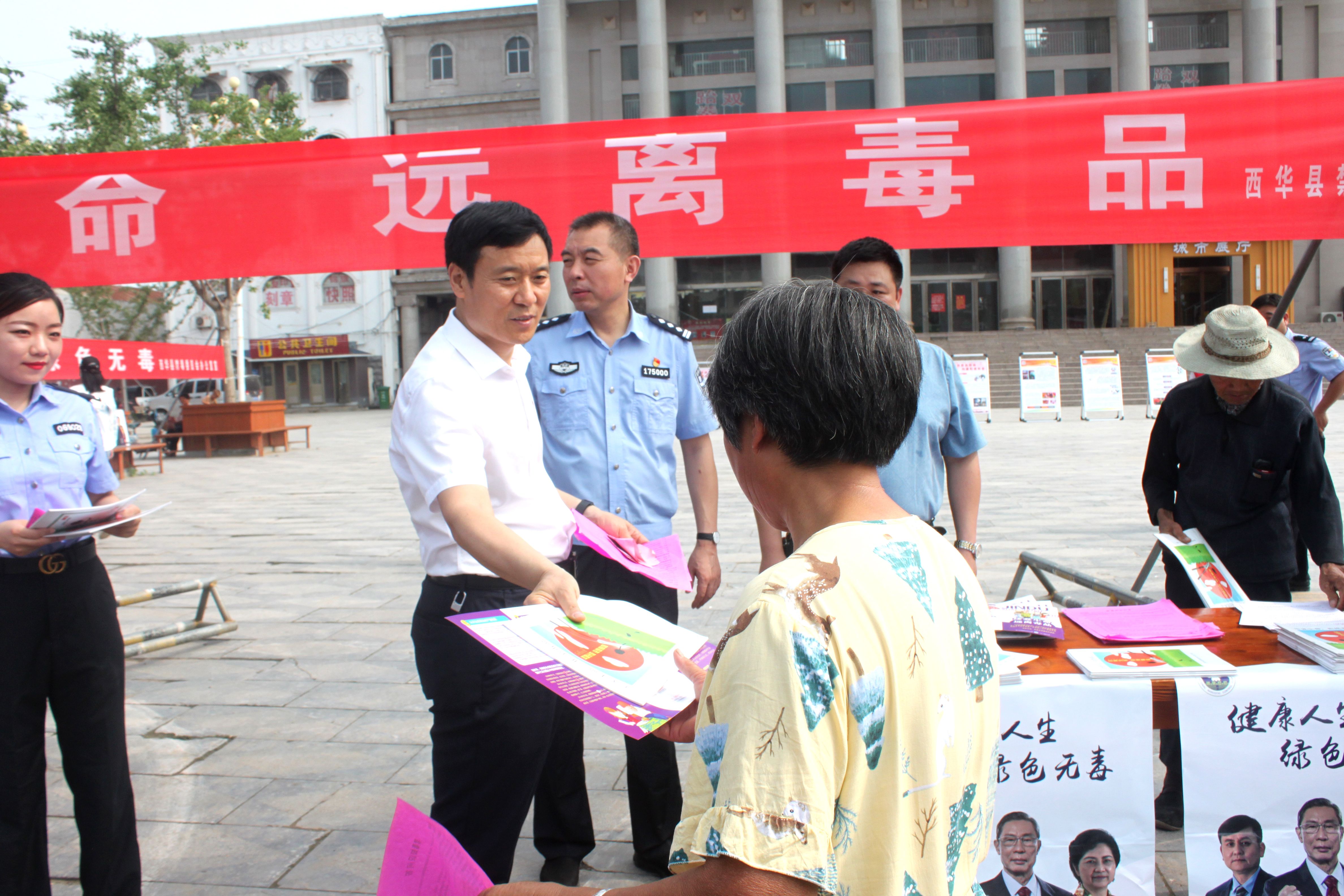 在第33個“國際禁毒日”到來之際,6月24日上午,西華縣禁毒委員會在縣城女媧廣場組織開展了全民禁毒宣傳活動??h委常委、統(tǒng)戰(zhàn)部長、縣禁毒委第一副主任趙增先出席活動。