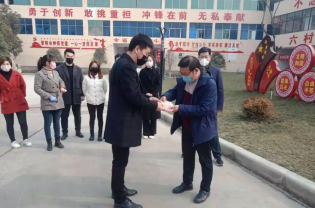 1月31日上午,組織4人向城郊鄉(xiāng)政府捐款30000元,并購買了一次性醫(yī)用口罩、84消毒液、酒精等價值5000多元的抗疫物資。
