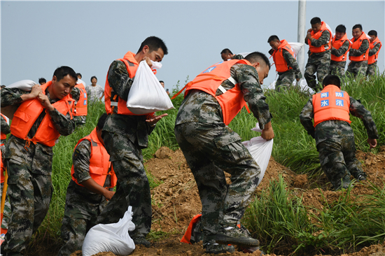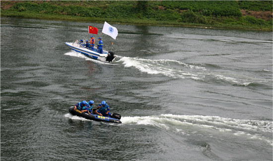 上午9時,隨著田林“開始演練”命令的下達,60人組成的搶險突擊隊,緊張有序開展了五個科目的演練。突擊隊員通過巡堤查險,觀察堤坡及堤腳附近有無滲水、管涌、裂縫、滑坡、漏洞等險情。發(fā)現(xiàn)險情后,迅速采取導滲、截滲等搶險措施,確保險情得到及時、正確、有效的處理或控制。發(fā)現(xiàn)落水人員,四艘沖鋒舟分工明確,立即前往落水地點進行救助。