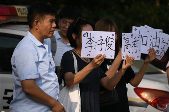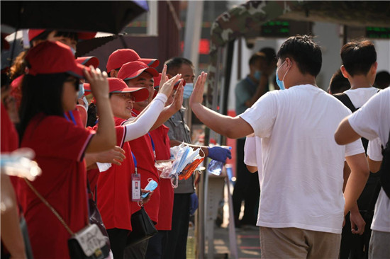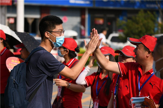 祝愿學(xué)子們考出好成績(jī),今夏實(shí)現(xiàn)金榜題名,是全社會(huì)共同的心聲。7月7日上午8點(diǎn)多,2020年高考開(kāi)啟神圣時(shí)刻,和往年不同的是,因疫情影響,學(xué)子們帶著口罩入場(chǎng),作為外援的家長(zhǎng)們,更是悉數(shù)趕到考場(chǎng)外,為孩子們加油!而辛勤一年的老師們,更顧不上歇一會(huì)兒,也趕到考場(chǎng)外,為學(xué)生擊掌打氣,構(gòu)成周口考場(chǎng)外動(dòng)人的圖景。圖為市一高考場(chǎng)外的家長(zhǎng)們舉著加油的牌子,為孩子助威!一高的老師穿上小紅馬甲,當(dāng)志愿者,和進(jìn)場(chǎng)的學(xué)生擊掌助威!