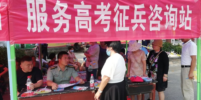 7月8日,太康縣大許寨鎮(zhèn)組織鎮(zhèn)武裝部人員到高考點(diǎn)設(shè)立服務(wù)站,向考生及家長(zhǎng)發(fā)放礦泉水、風(fēng)油精及大學(xué)生入伍宣傳冊(cè);服務(wù)考生決戰(zhàn)高考,耐心宣傳入伍政策,少年尚武志,攜筆亦從戎;鼓勵(lì)優(yōu)秀畢業(yè)生投身國防、報(bào)效祖國。