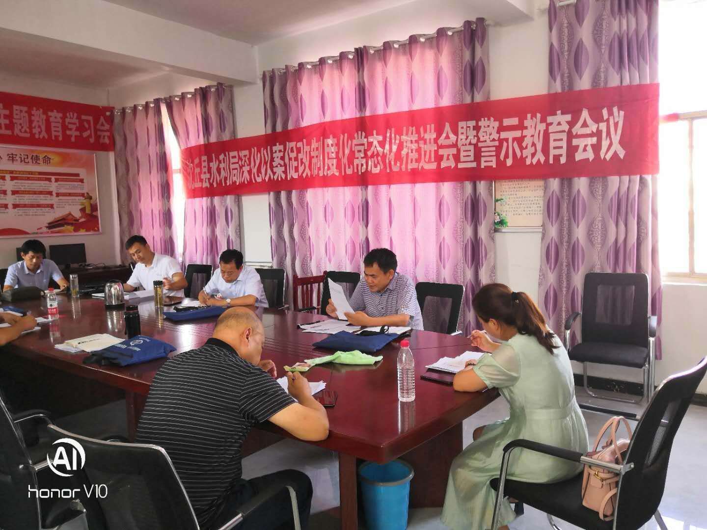 7月9日,沈丘縣水利局召開深化以案促改制度化常態(tài)化推進(jìn)會(huì)暨警示教育大會(huì)。會(huì)上,局黨組書記、局長(zhǎng)張偉傳達(dá)了縣委深化以案促改制度化常態(tài)化推進(jìn)會(huì)暨警示教育會(huì)精神,宣讀了《關(guān)于在全局集中開展以案促改的專項(xiàng)工作方案》;就下一步如何貫徹落實(shí)縣委縣深化以案促改制度化常態(tài)化推進(jìn)會(huì)暨警示教育會(huì)精神作出部署安排。