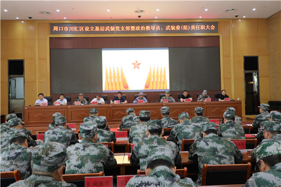 黨管武裝建設(shè)國(guó)防,軍民攜手共筑長(zhǎng)城。為健全武裝工作組織領(lǐng)導(dǎo)體系為推動(dòng)國(guó)防動(dòng)員和后備力量建設(shè)在基層末端落實(shí),7月16日上午,周口市川匯區(qū)召開(kāi)基層武裝黨支部暨政治教導(dǎo)員、武裝委(組)員任職大會(huì)。周口軍分區(qū)司令員湯維政,區(qū)委書(shū)記、區(qū)人武部黨委第一書(shū)記李宗喜,周口軍分區(qū)政治工作處主任李揚(yáng),市委組織部副處級(jí)調(diào)研員宋陽(yáng),區(qū)人武部政委高新傳、部長(zhǎng)陳繼芳及城鄉(xiāng)一體化示示范區(qū)、經(jīng)濟(jì)開(kāi)發(fā)區(qū)、港口物流產(chǎn)業(yè)聚集區(qū)等有關(guān)負(fù)責(zé)同志參加了大會(huì)。會(huì)上設(shè)立了18個(gè)基層武裝黨支部,任命了15名基層武裝部政治教導(dǎo)員、20名村(社區(qū))武裝委(組)員任職命令,武裝部政治教導(dǎo)員、武裝預(yù)建黨支部書(shū)記和兼職武裝委(組)員代表先后作了履職承諾發(fā)言,湯維政等為新任命的人員頒發(fā)了任職證書(shū)。