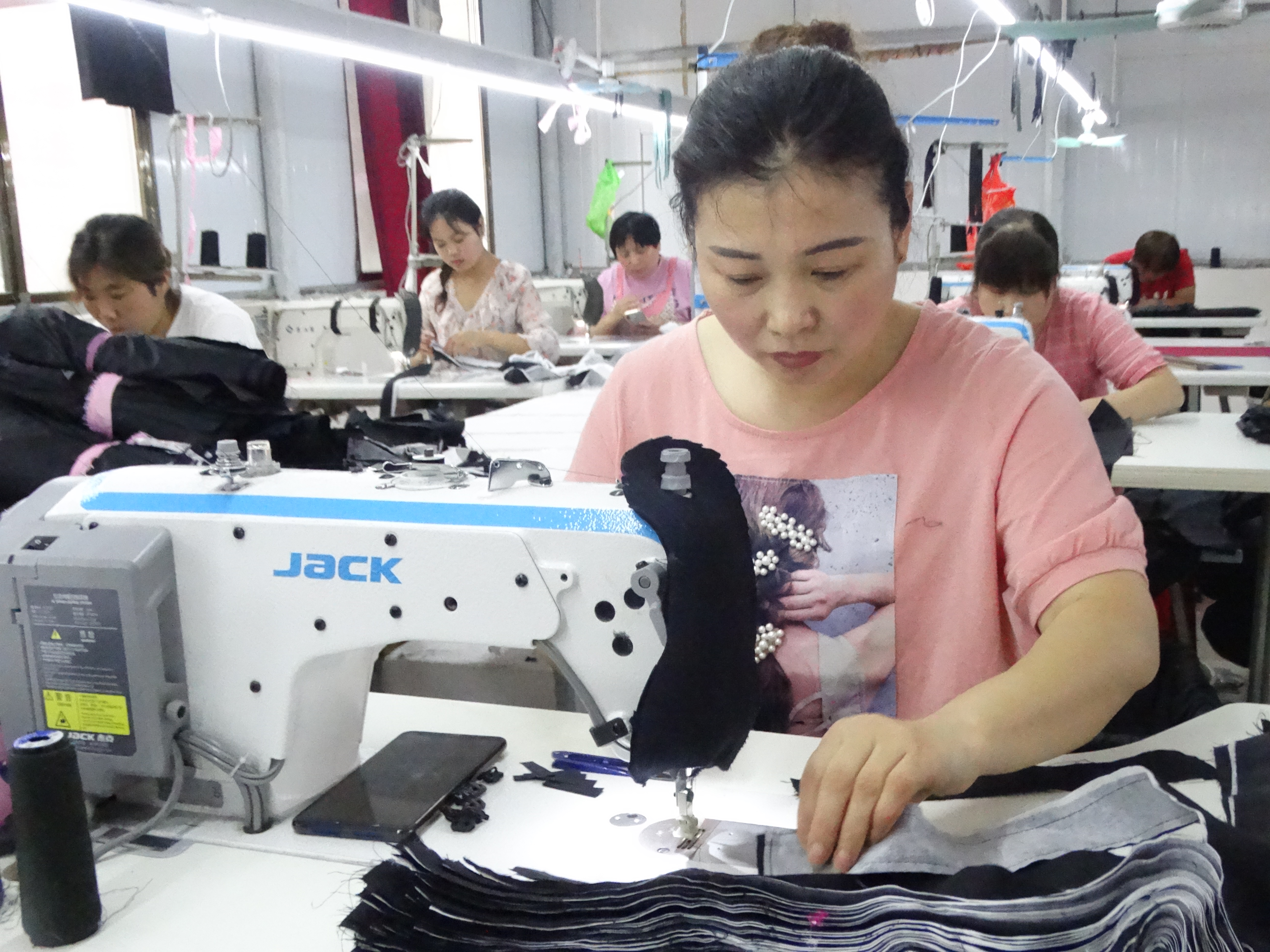 7月19日,沈丘縣周營鎮(zhèn)馬營村一處服裝來料加工車間,來自附近村莊的女工們在流水生產(chǎn)線上忙著加工訂單羽絨服。今年以來,沈丘縣紀(jì)委監(jiān)委充分發(fā)揮監(jiān)督保障作用,通過精準(zhǔn)監(jiān)督推動(dòng)就業(yè)扶貧和“六穩(wěn)”“六?!惫ぷ髀浼?xì)落實(shí),讓留守貧困群眾在家門口端穩(wěn)就業(yè)‘飯碗’,使其持續(xù)工薪增收不返貧。