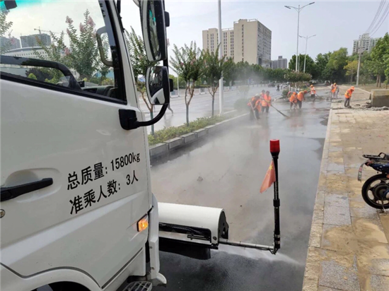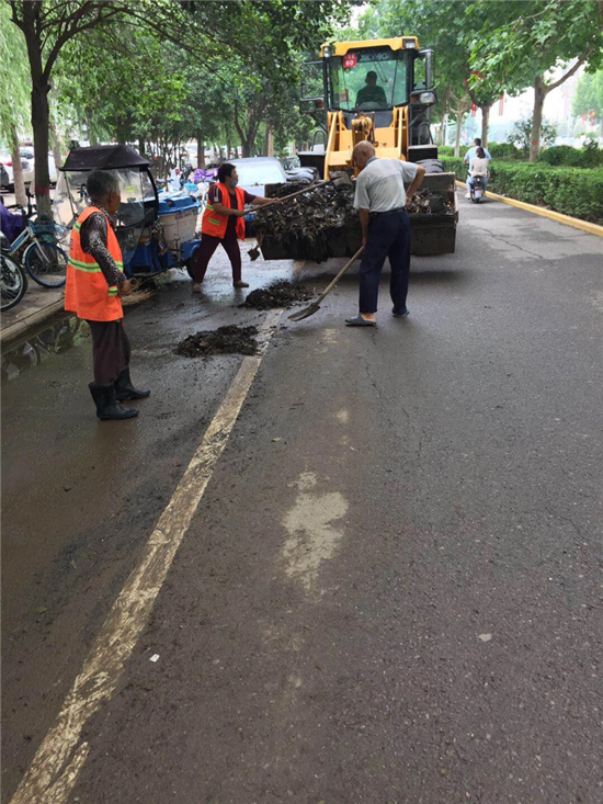 強降雨過后,道路泥沙沉積嚴重。開發(fā)區(qū)公用事業(yè)管理中心迅速行動,組織環(huán)衛(wèi)工人,出動高壓清洗車、灑水車、洗掃車等作業(yè)車輛,對道路進行機械化聯(lián)合清洗、清掃工作。