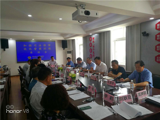 7月28日上午,商水縣加強(qiáng)司法保障、優(yōu)化營(yíng)商環(huán)境座談會(huì)在縣檢察院會(huì)議室舉行??h政協(xié)副主席、工商聯(lián)主席彭發(fā)光,縣檢察院黨組書(shū)記、檢察長(zhǎng)顧濤,縣公安局政委程寶峰,縣法院副院長(zhǎng)張華衛(wèi)、縣工商聯(lián)副主席兼秘書(shū)長(zhǎng)王志成等領(lǐng)導(dǎo)及全縣近20家重點(diǎn)民營(yíng)企業(yè)負(fù)責(zé)人參加了座談會(huì)。