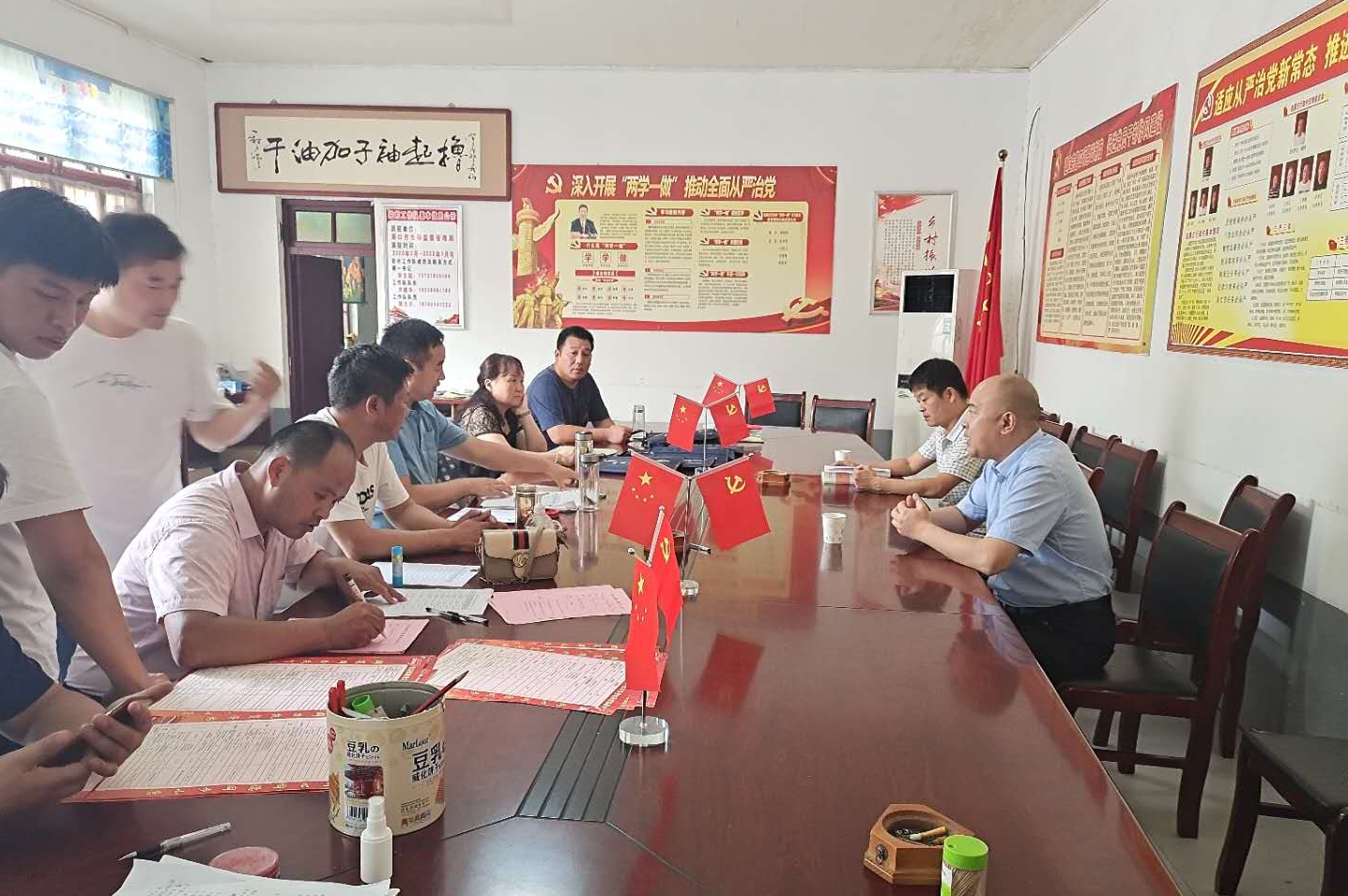 7月31日,市市場(chǎng)監(jiān)督管理局副局長(zhǎng)遲恒偉同志帶領(lǐng)華潤(rùn)藥業(yè)支部一行三人來(lái)沈丘縣紙店鎮(zhèn)趙腰莊行政村開(kāi)展扶貧日幫扶活動(dòng)。