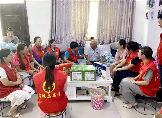 當日下午,志愿者及愛心商家一行20多人,在駐村干部及村支部書記陪同下,來到遲營鄉(xiāng)順河村走訪慰問退伍老兵和老黨員,為他們送去豆奶、八寶粥、飲料、糕點等慰問品。大家不顧酷暑高溫天氣,走村入戶,一家一家地走訪,為退伍老兵送去節(jié)日的問候,聆聽老兵講述那艱苦卓絕的戰(zhàn)爭和轟轟烈烈社會主義建設的歲月,讓他們感受到黨和政府及社會的關懷關愛,受到好評。