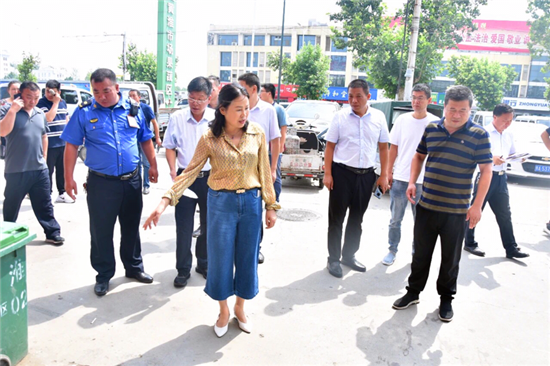 谷靜深入黃淮物流市場(chǎng)及沿街門店,檢查“門前三包”落實(shí)及問(wèn)題整改情況。