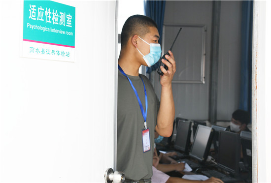 8月11日,在商水縣中醫(yī)院征兵體檢站,應(yīng)征青年在心理訪談室接受檢測。