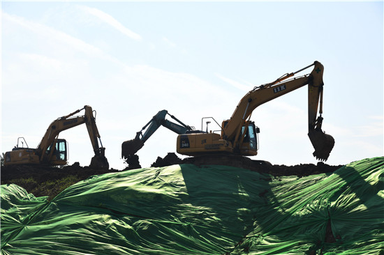 8月13日,在河南省周口市商水縣浩邦紡織年產(chǎn)12000噸高檔針織面料項(xiàng)目工地,工程機(jī)械正在開(kāi)挖地基。