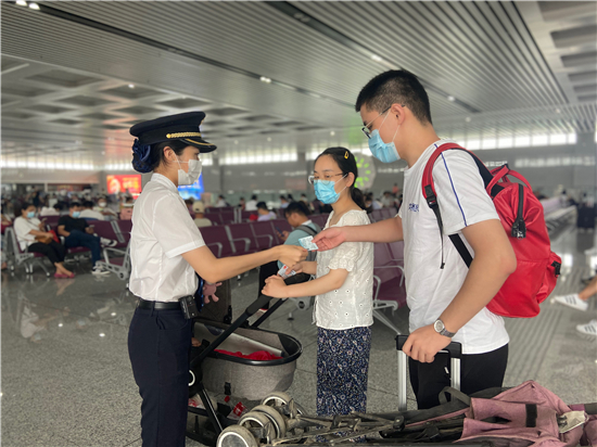 據(jù)了解,周口東站結合客流情況優(yōu)化客流疏導舉措,在進站口、檢票口、站臺關鍵位置加派黨員先鋒隊和團員先鋒隊保障、強化現(xiàn)場指引,確保客運進站安全、有序、可控。針對暑期高溫多雨天氣,服務臺實時監(jiān)測站內(nèi)溫度,在做好節(jié)支降耗的同時切實保證乘客候乘環(huán)境。車站增設“暑運愛心便民箱”,為乘客提供防暑降溫用品、口罩、藥箱等便民物品。同時,為老弱病幼殘等重點旅客提供“愛心卡”,為行動不便或行李較多、帶兒童較多的乘客提供貼心幫助。