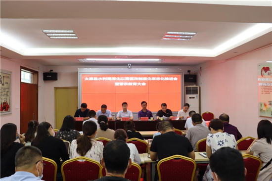8月12日上午,縣水利局在東三樓會(huì)議室召開深化以案促改制度化常態(tài)化推進(jìn)會(huì)暨警示教育大會(huì)。局機(jī)關(guān)全體、二級(jí)機(jī)構(gòu)負(fù)責(zé)人參加會(huì)議。紀(jì)委監(jiān)委法制室主任王志飛、派駐紀(jì)檢組長李向黨出席會(huì)議。
