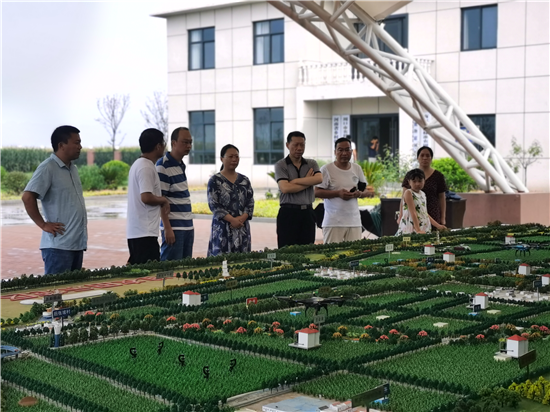 在商水縣高標準農(nóng)田示范區(qū)管理中心,劉勇一行認真聽取縣農(nóng)業(yè)局有關負責人關于商水縣高標準農(nóng)田建設暨高效節(jié)水灌溉示范工作開展情況介紹,現(xiàn)場觀看了商水縣高標準農(nóng)田建設工作專題片。劉勇認為商水深入推進國家“藏糧于地、藏糧于技”戰(zhàn)略,堅持以科技興農(nóng)助力鄉(xiāng)村振興,在高標準農(nóng)田和高效節(jié)水灌溉示范區(qū)建設工作中規(guī)劃起點高、建設標準高,提高了農(nóng)業(yè)綜合效益,樹立了標桿、打造了樣板,此種工作思路和做法值得學習借鑒。他表示,將組織全市的書畫家把商水縣高標準農(nóng)田的壯麗景觀描繪下來,讓我們家鄉(xiāng)的美景和農(nóng)業(yè)現(xiàn)代化巨大成就以更加直觀的形式展現(xiàn)在全省、全國的人民面前,從而進一步提高商水、周口的知名度和美譽度。