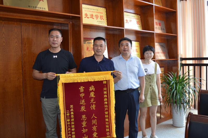 近日,沈丘縣思源實(shí)驗(yàn)學(xué)校將一面上書“病魔無情,人間有愛,雪中送炭,恩重如山”的錦旗送到河南垚鑫房地產(chǎn)營銷策劃有限公司工作人員手中。據(jù)了解,該公司在得知沈丘縣思源實(shí)驗(yàn)學(xué)校英語教師程改改父親因患肝硬化,已無力承擔(dān)后續(xù)的治療費(fèi)用時(shí),第一時(shí)間為程改改捐款2萬元。